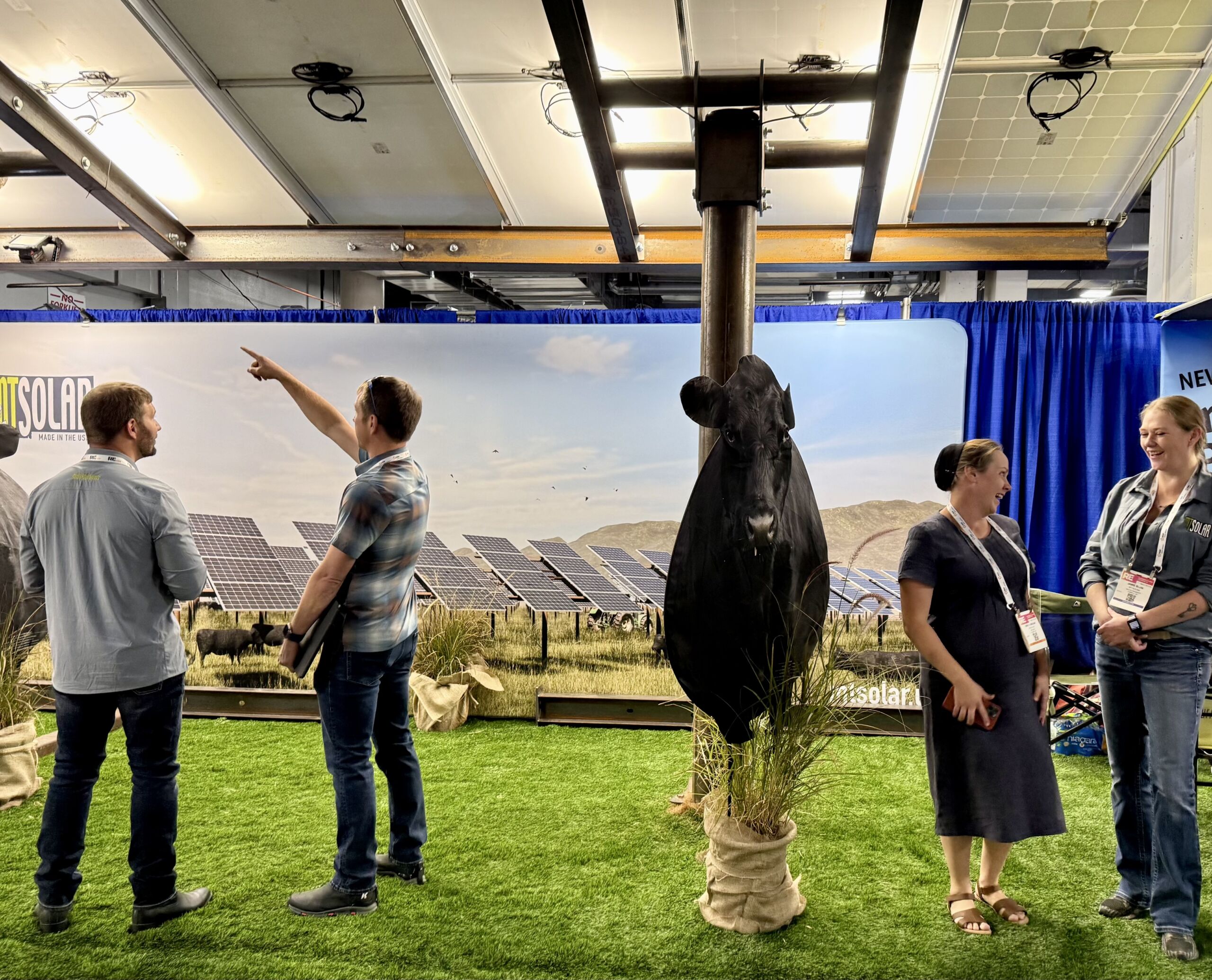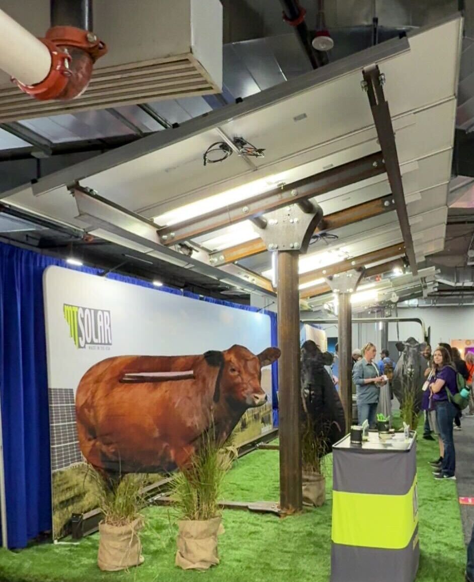 With the help of actual solar mounts, assembled and on display right there on the floor of the Venetian Expo and Caesars Forum, along with a few close-to-life-like cows positioned below, we got to showcase the AgriBeam.