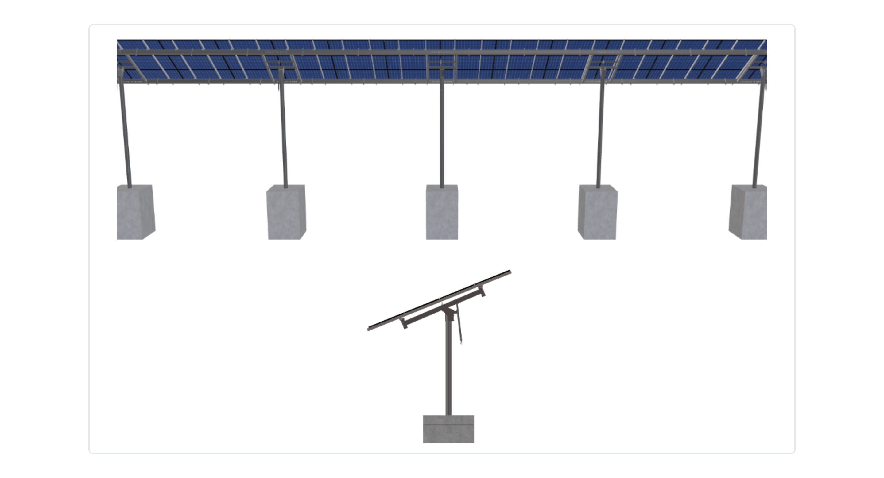 This Pole Mount is designed to meet your site-specific inputs which are modules with dimensions of 90 inches by 45 inches and an array layout of 14 wide by 3 high.