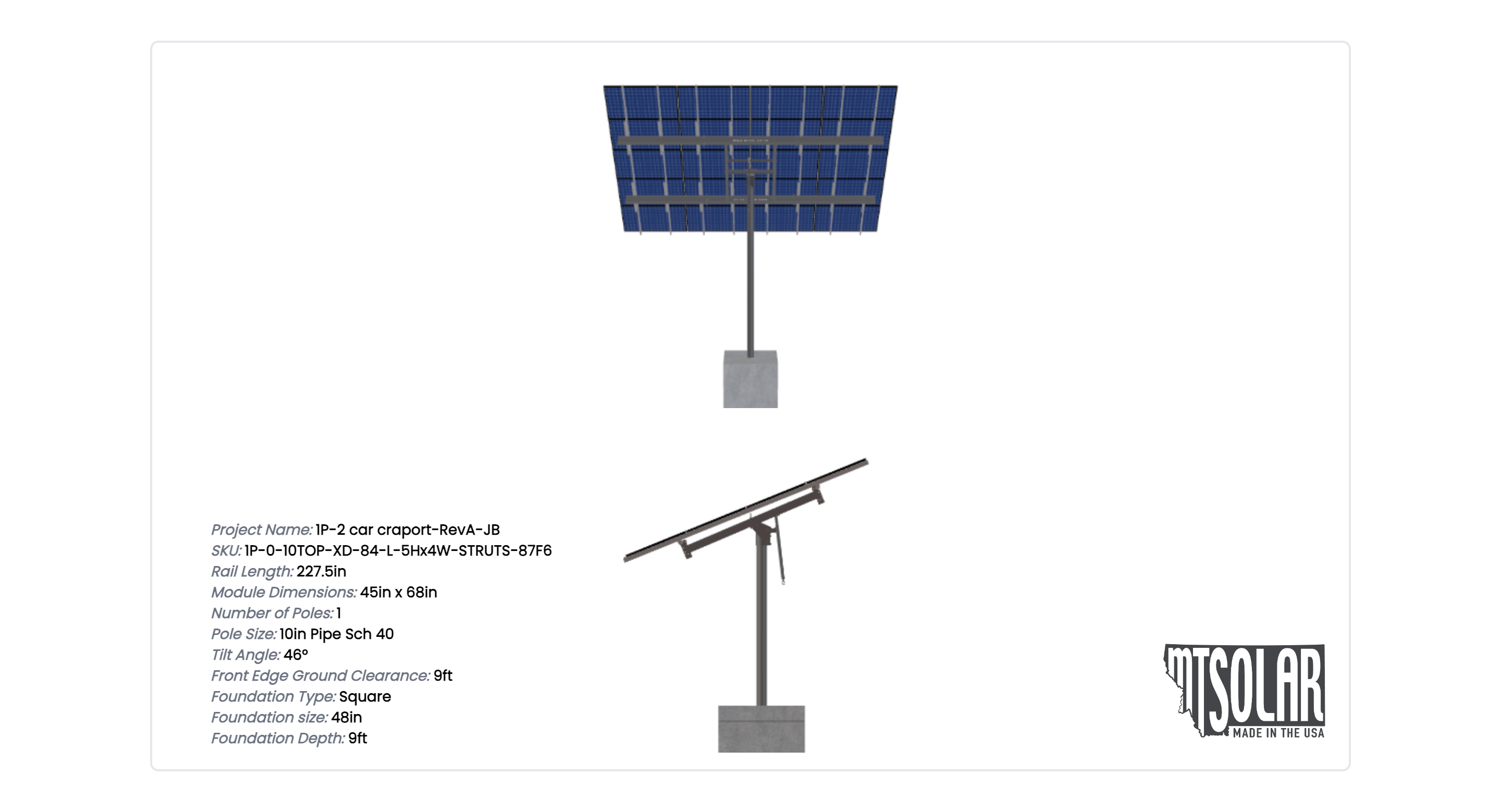 This Pole Mount is designed to meet your site-specific inputs which are modules with dimensions of 68 inches by 45 inches and an array layout of 4 wide by 5 high.