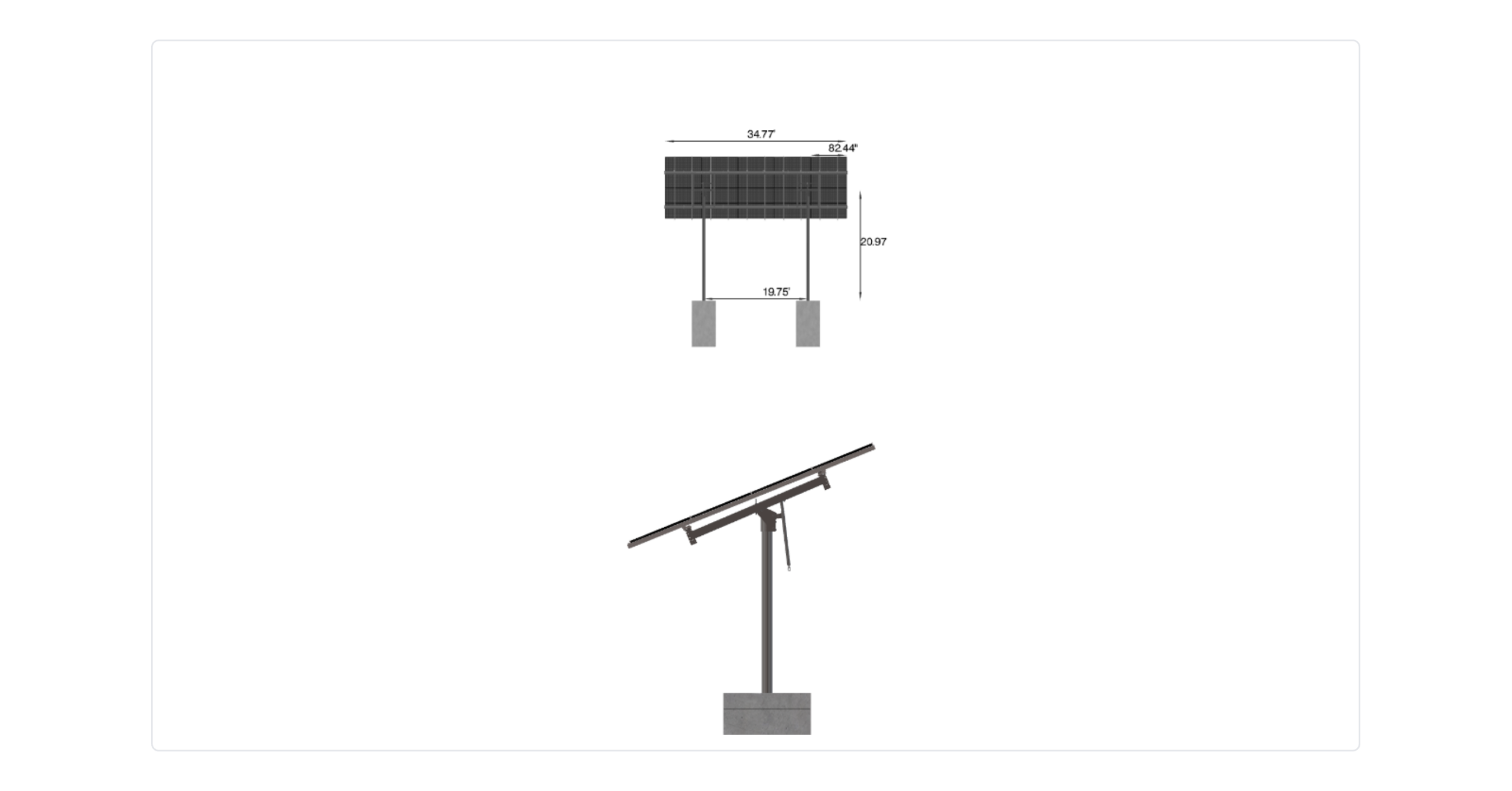 This Pole Mount is designed to meet your site-specific inputs which are modules with dimensions of 82.44 inches by 40.86 inches and an array layout of 5 wide by 4 high.