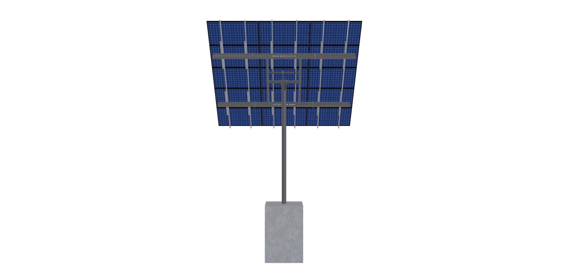 This Pole Mount is designed to meet your site-specific inputs which are modules with dimensions of 71 inches by 40 inches and an array layout of 3 wide by 5 high.