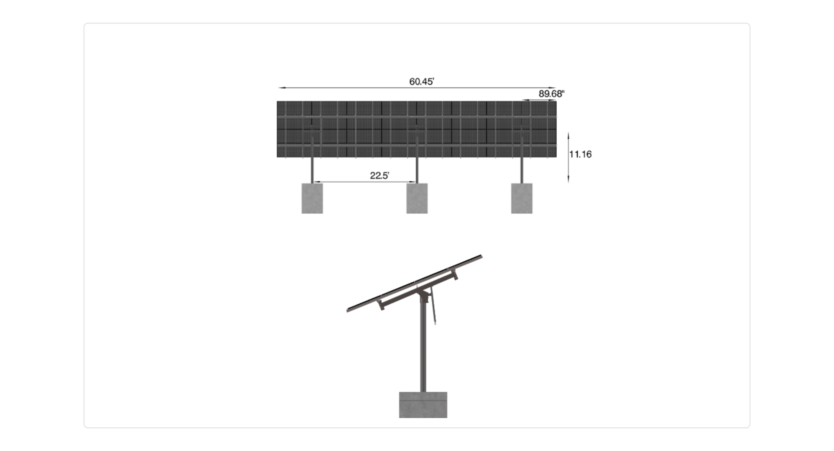 This Pole Mount is designed to meet your site-specific inputs which are modules with dimensions of 89.68 inches by 44.64 inches and an array layout of 8 wide by 4 high.