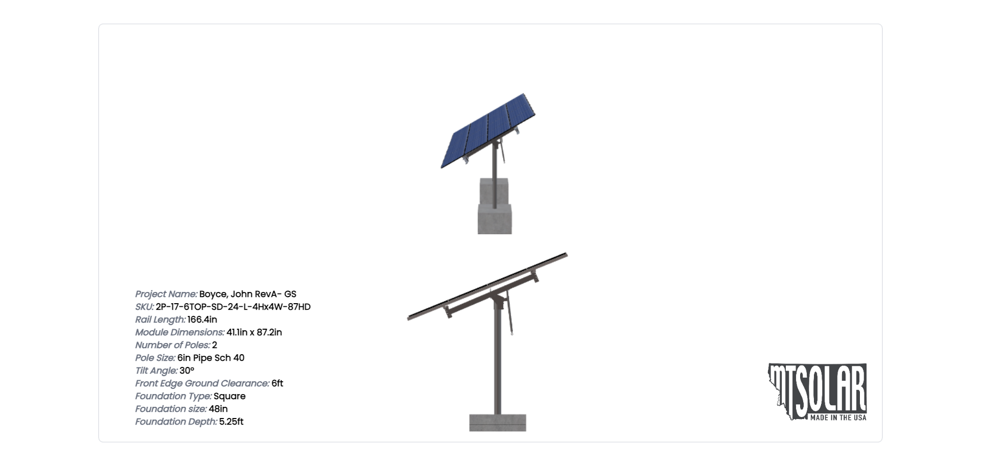 This Pole Mount is designed to meet your site-specific inputs which are modules with dimensions of 87.2 inches by 41.1 inches and an array layout of 4 wide by 4 high.
