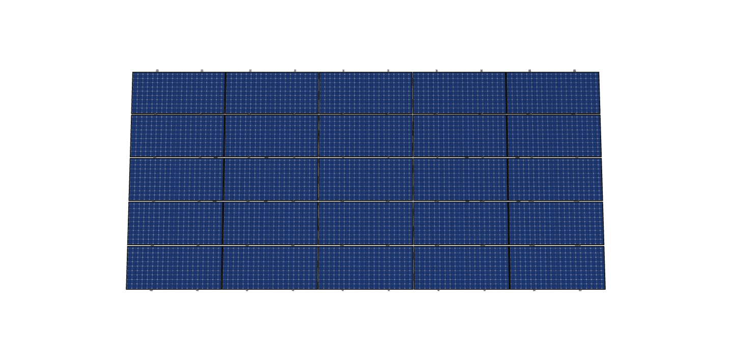 This Pole Mount is designed to meet your site-specific inputs which are modules with dimensions of 87.2 inches by 41.1 inches and an array layout of 5 wide by 5 high.