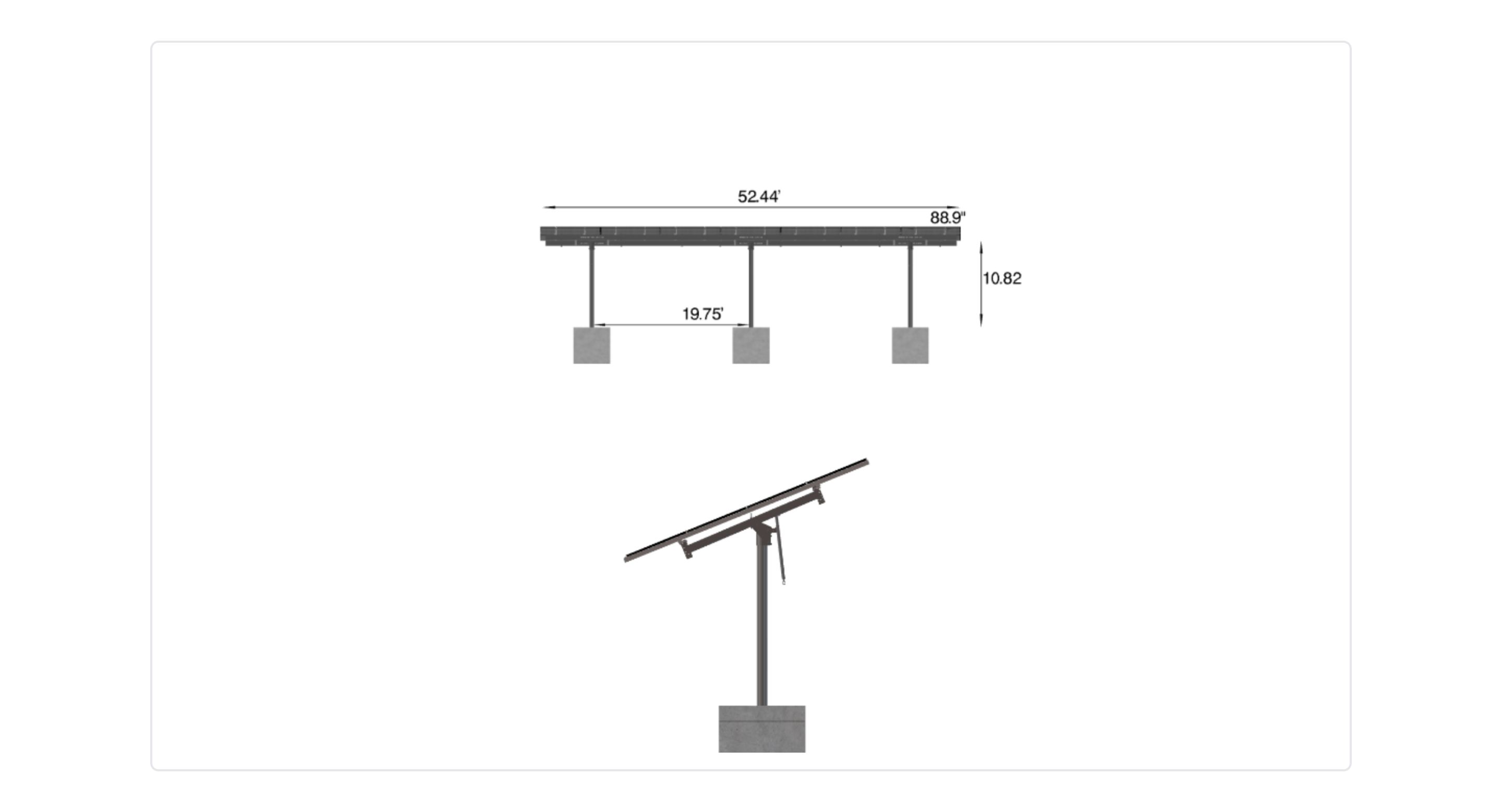 This Pole Mount is designed to meet your site-specific inputs which are modules with dimensions of 88.9 inches by 44.6 inches and an array layout of 7 wide by 5 high.