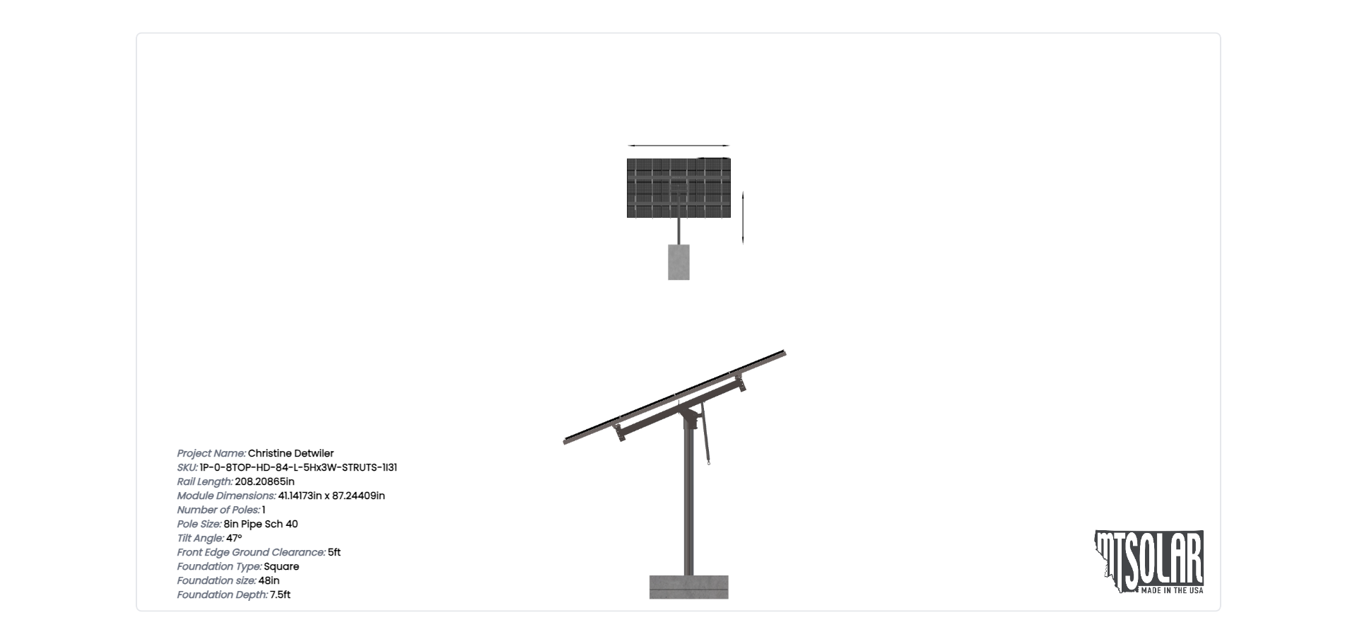 This Pole Mount is designed to meet your site-specific inputs which are modules with dimensions of 87.24409 inches by 41.14173 inches and an array layout of 3 wide by 5 high.