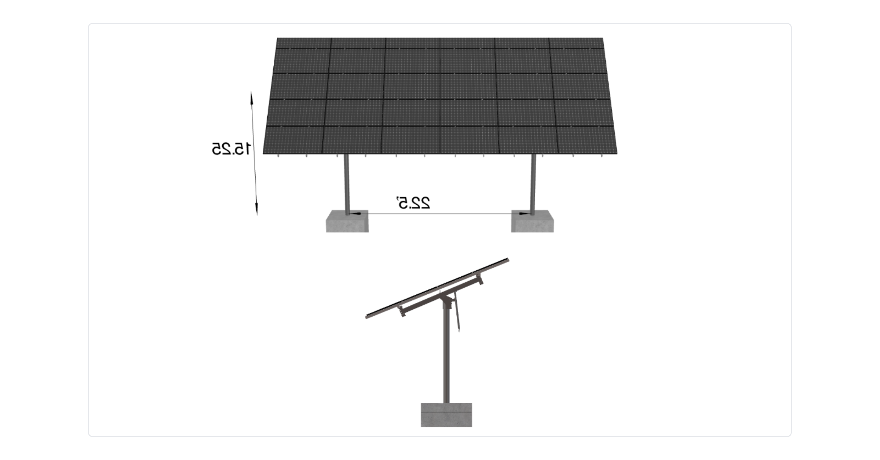 This Pole Mount is designed to meet your site-specific inputs which are modules with dimensions of 78 inches by 42 inches and an array layout of 6 wide by 5 high.