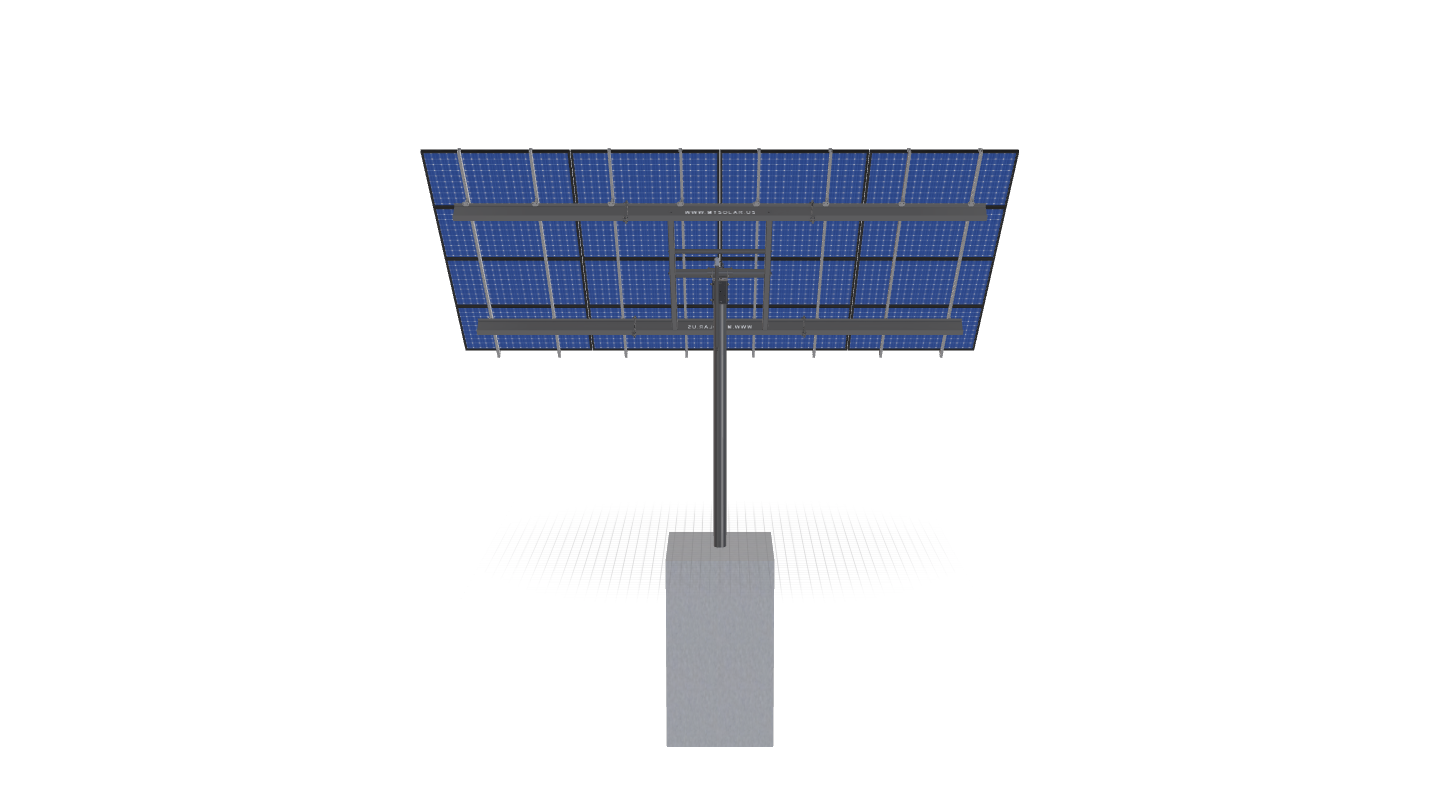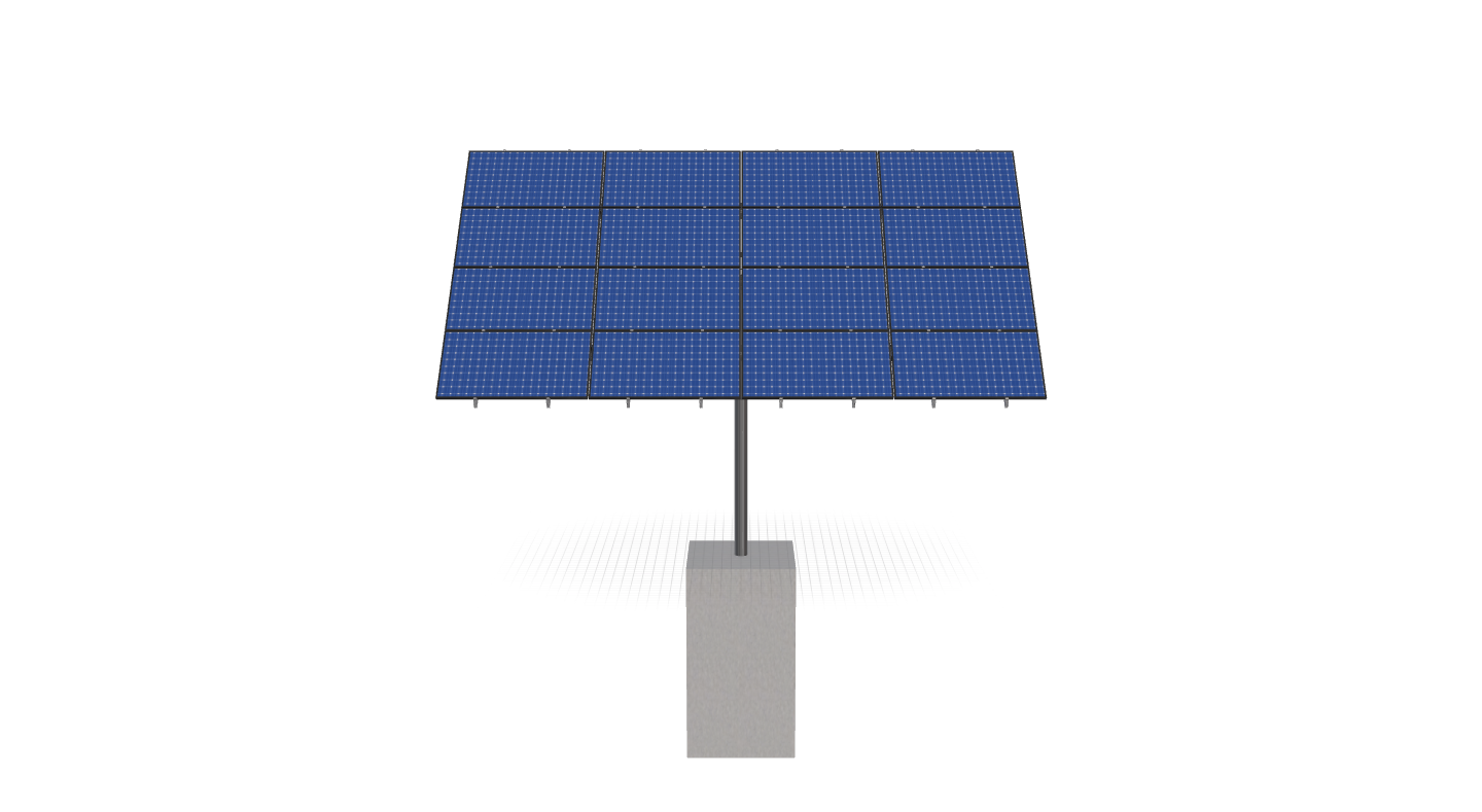 This Pole Mount is designed to meet your site-specific inputs which are modules with dimensions of 70 inches by 40 inches and an array layout of 4 wide by 4 high.