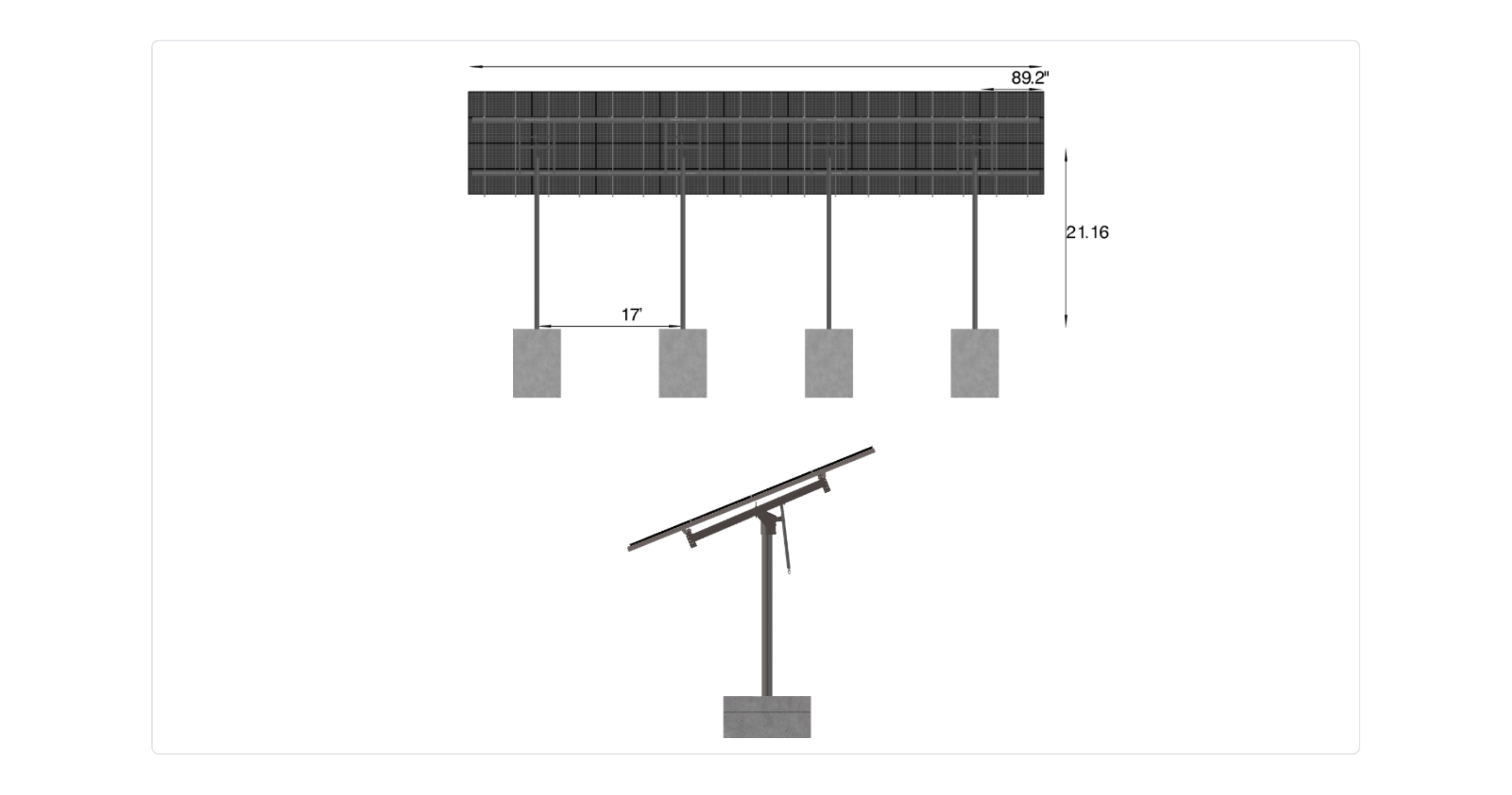 This Pole Mount is designed to meet your site-specific inputs which are modules with dimensions of 89.2 inches by 44.6 inches and an array layout of 9 wide by 4 high.