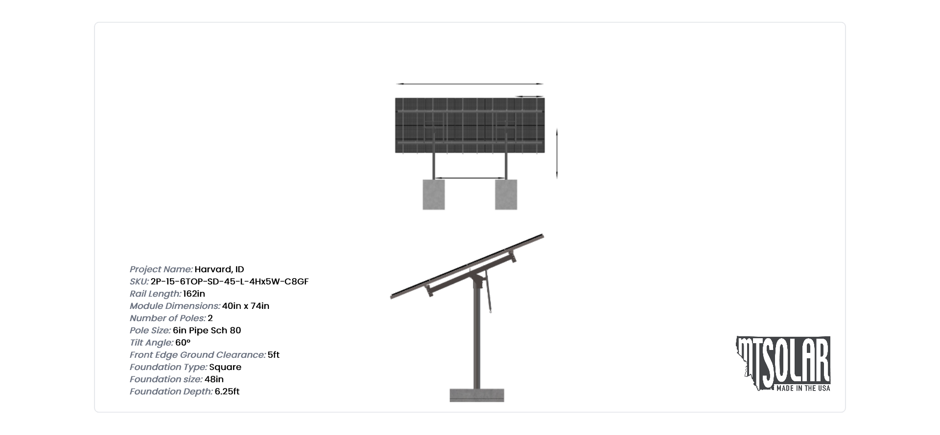 This Pole Mount is designed to meet your site-specific inputs which are modules with dimensions of 74 inches by 40 inches and an array layout of 5 wide by 4 high.