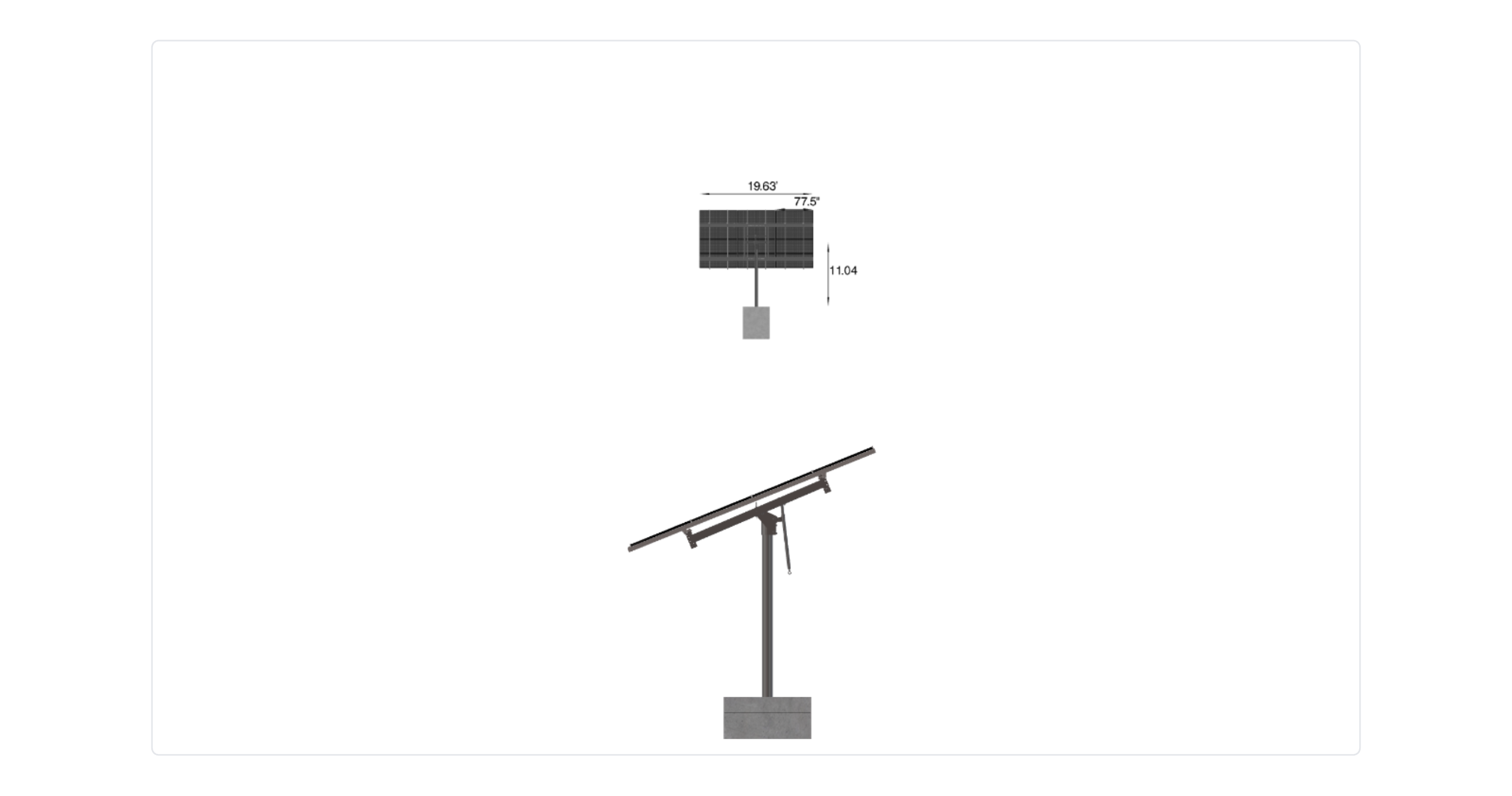 This Pole Mount is designed to meet your site-specific inputs which are modules with dimensions of 77.5 inches by 39 inches and an array layout of 3 wide by 4 high.
