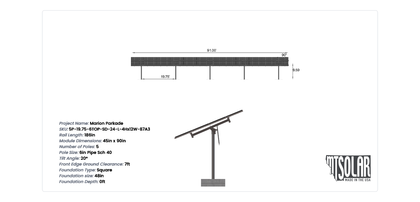 This Pole Mount is designed to meet your site-specific inputs which are modules with dimensions of 90 inches by 45 inches and an array layout of 12 wide by 4 high.