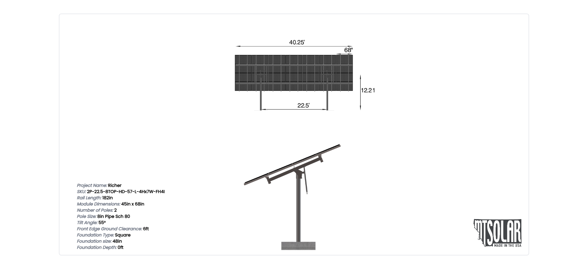 This Pole Mount is designed to meet your site-specific inputs which are modules with dimensions of 68 inches by 45 inches and an array layout of 7 wide by 4 high.