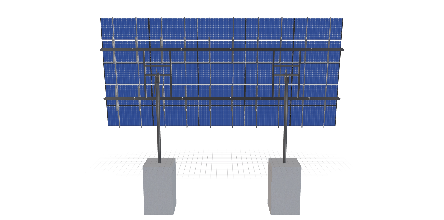 This Pole Mount is designed to meet your site-specific inputs which are modules with dimensions of 87.2 inches by 41.1 inches and an array layout of 5 wide by 5 high.