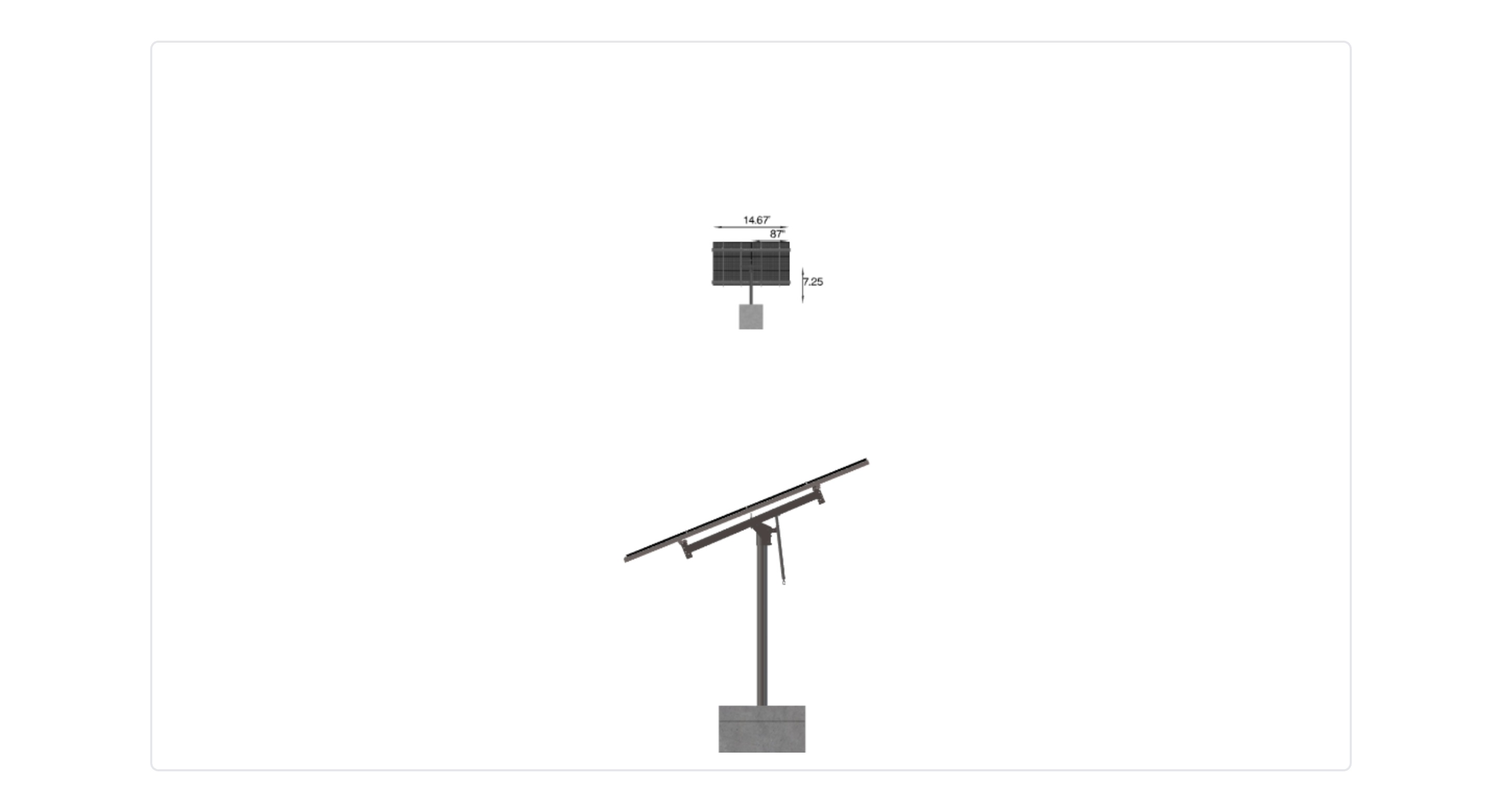 This Pole Mount is designed to meet your site-specific inputs which are modules with dimensions of 87 inches by 41 inches and an array layout of 2 wide by 3 high.