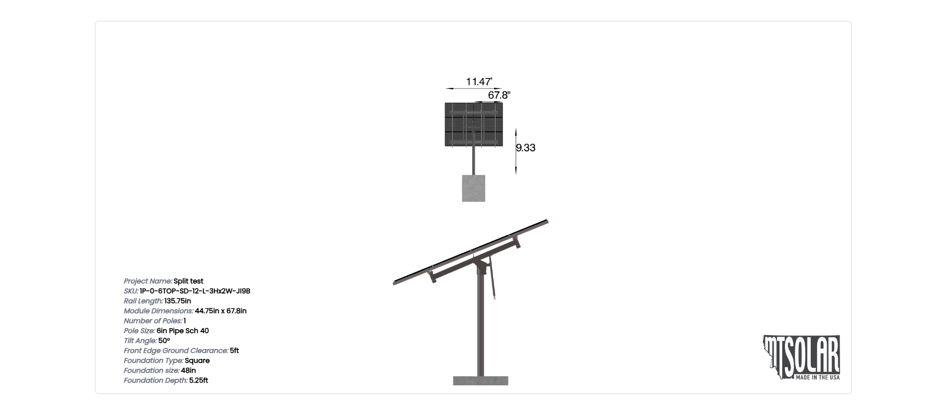 This Pole Mount is designed to meet your site-specific inputs which are modules with dimensions of 67.8 inches by 44.75 inches and an array layout of 2 wide by 3 high.