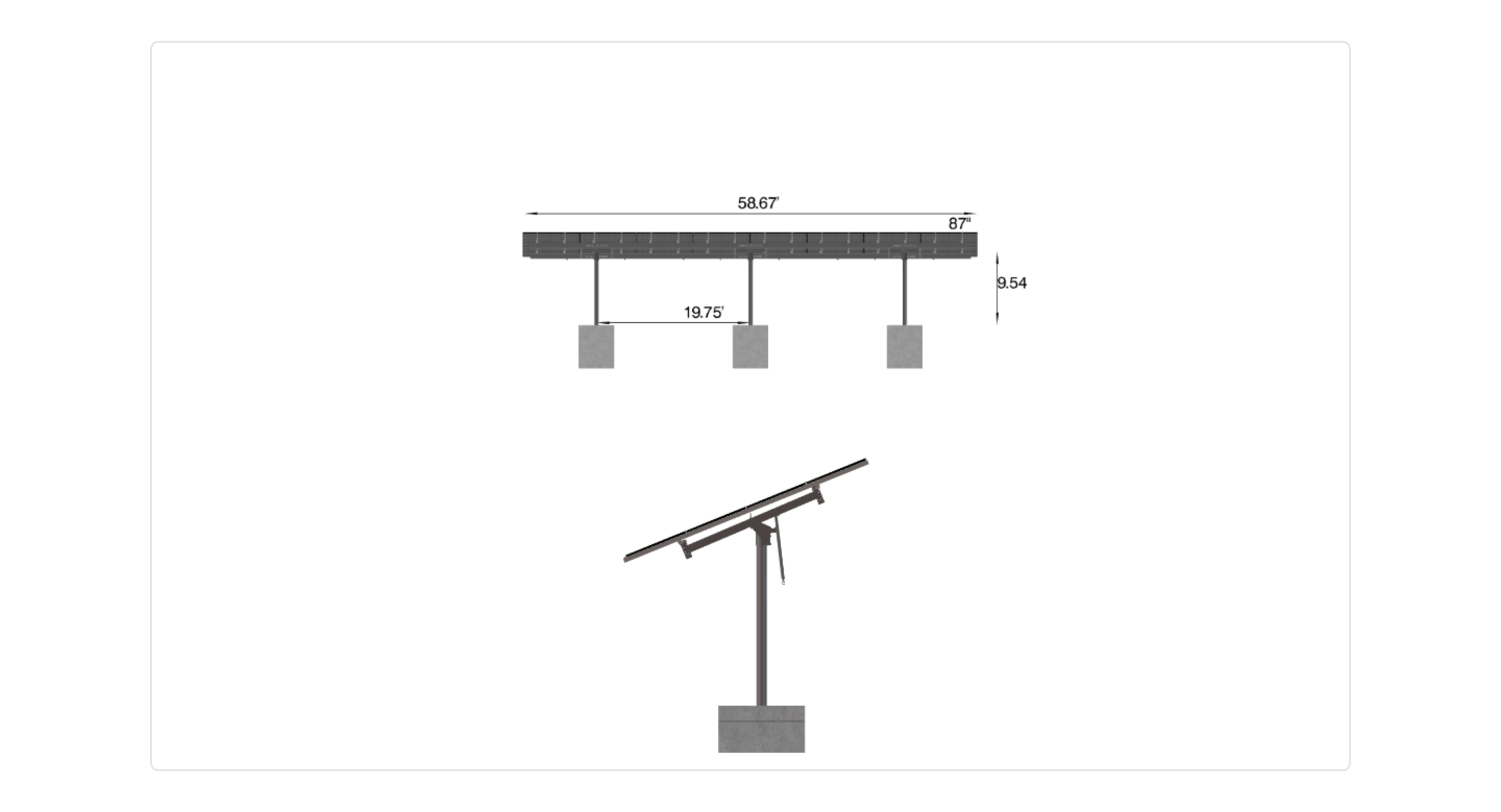 This Pole Mount is designed to meet your site-specific inputs which are modules with dimensions of 87 inches by 42 inches and an array layout of 8 wide by 5 high.