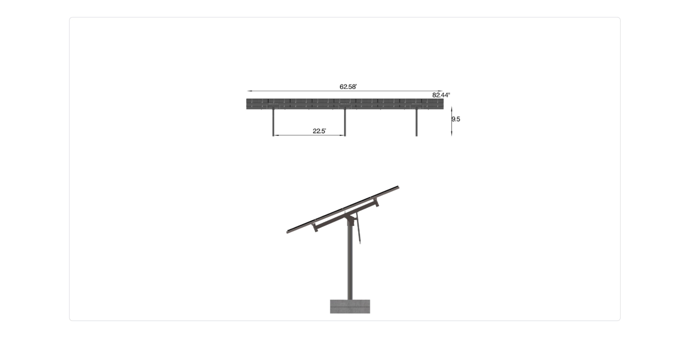 This Pole Mount is designed to meet your site-specific inputs which are modules with dimensions of 82.44 inches by 40.9 inches and an array layout of 9 wide by 5 high.