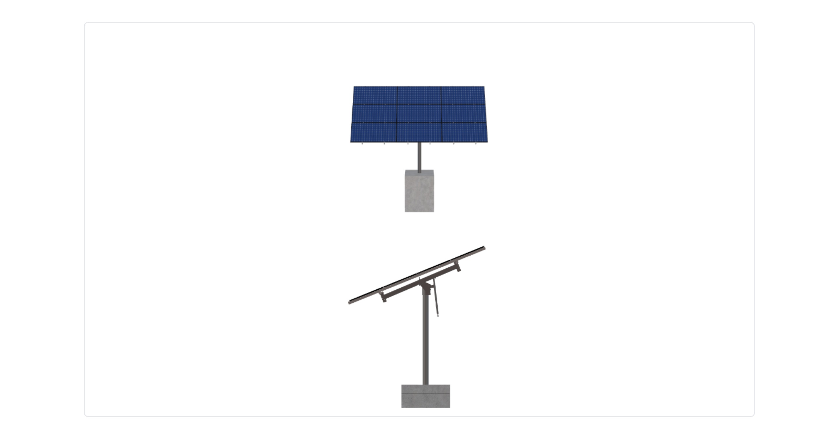 This Pole Mount is designed to meet your site-specific inputs which are modules with dimensions of 82.13 inches by 41.5 inches and an array layout of 3 wide by 3 high.