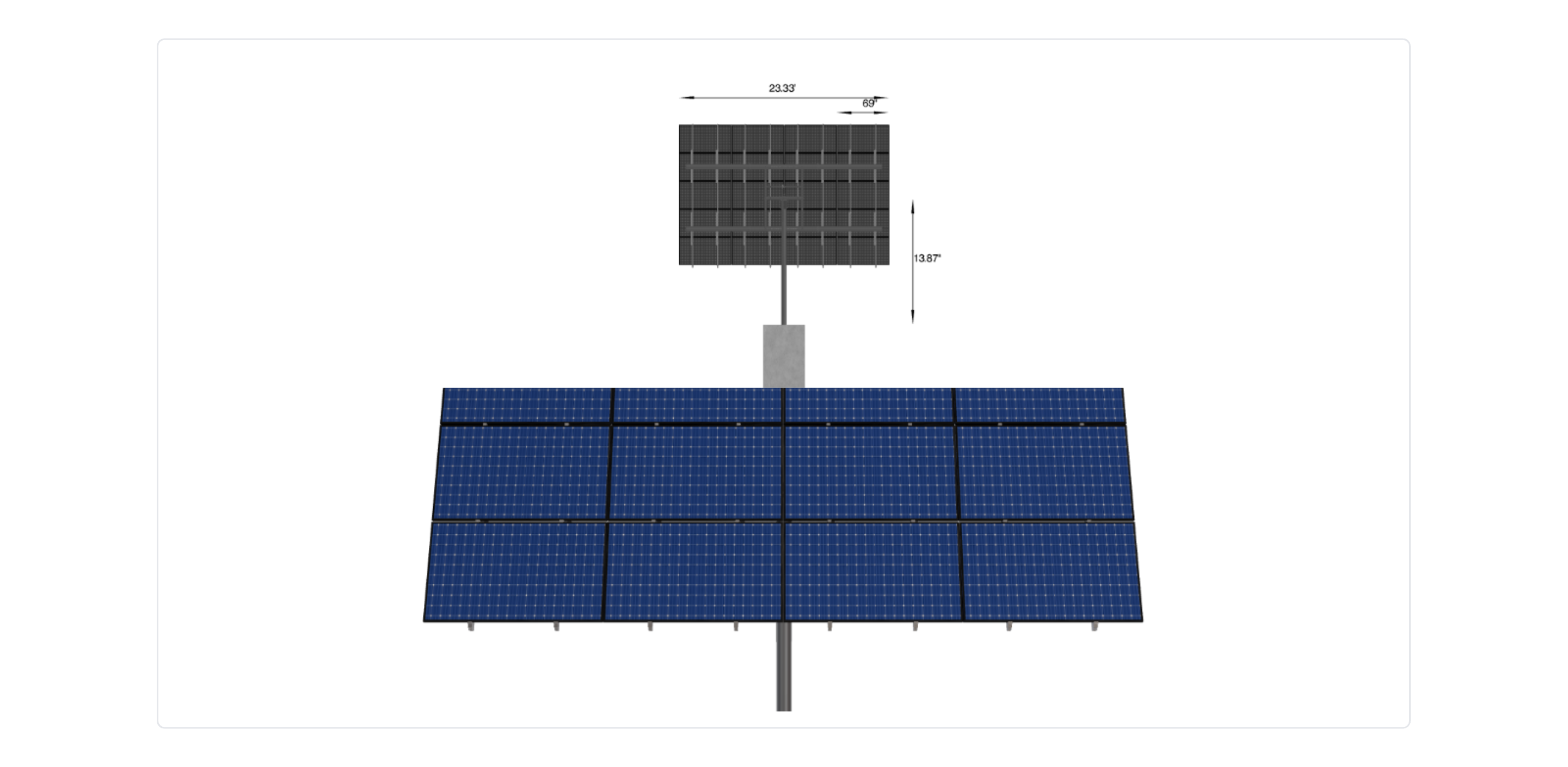 This Pole Mount is designed to meet your site-specific inputs which are modules with dimensions of 69 inches by 41.2 inches and an array layout of 4 wide by 5 high.