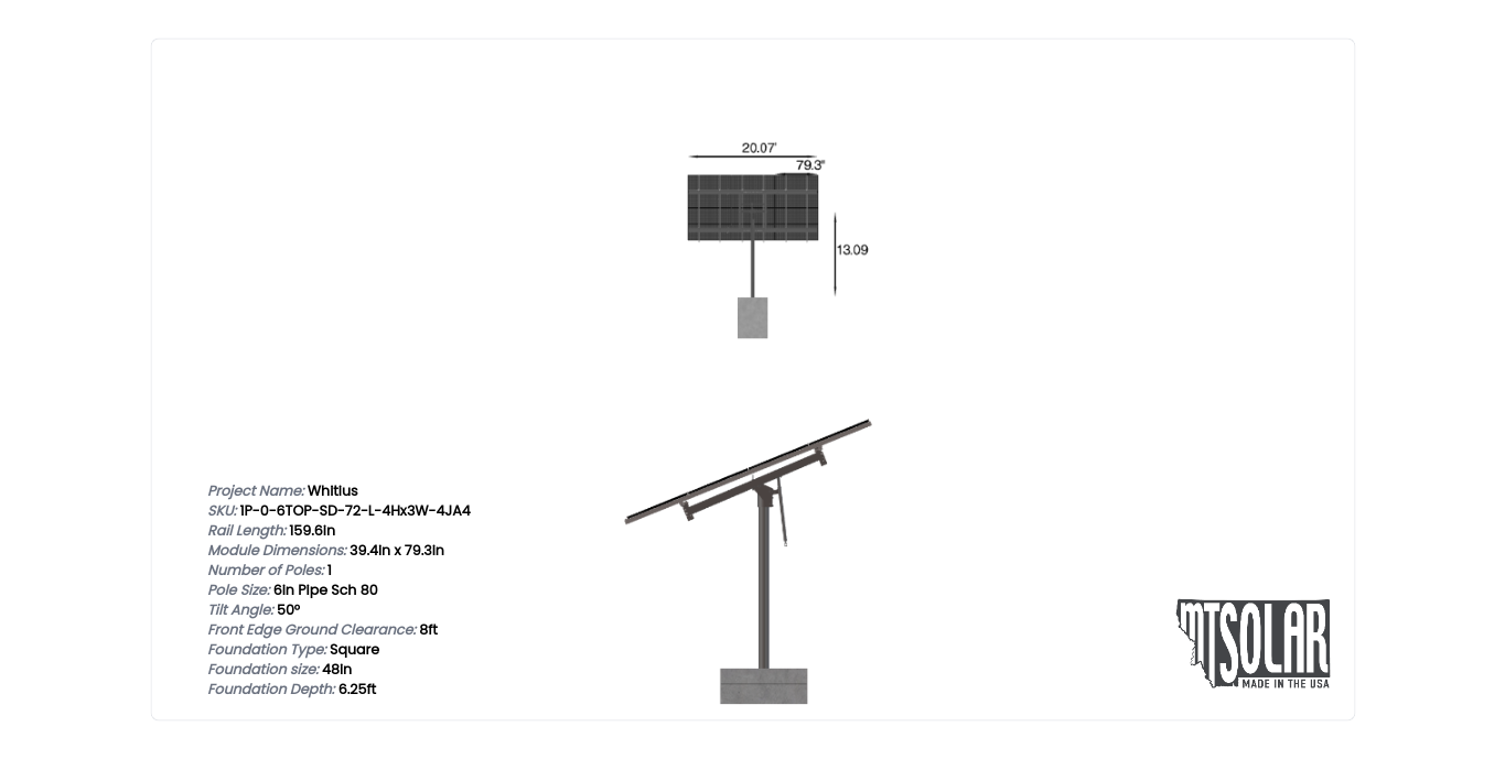 This Pole Mount is designed to meet your site-specific inputs which are modules with dimensions of 79.3 inches by 39.4 inches and an array layout of 3 wide by 4 high.