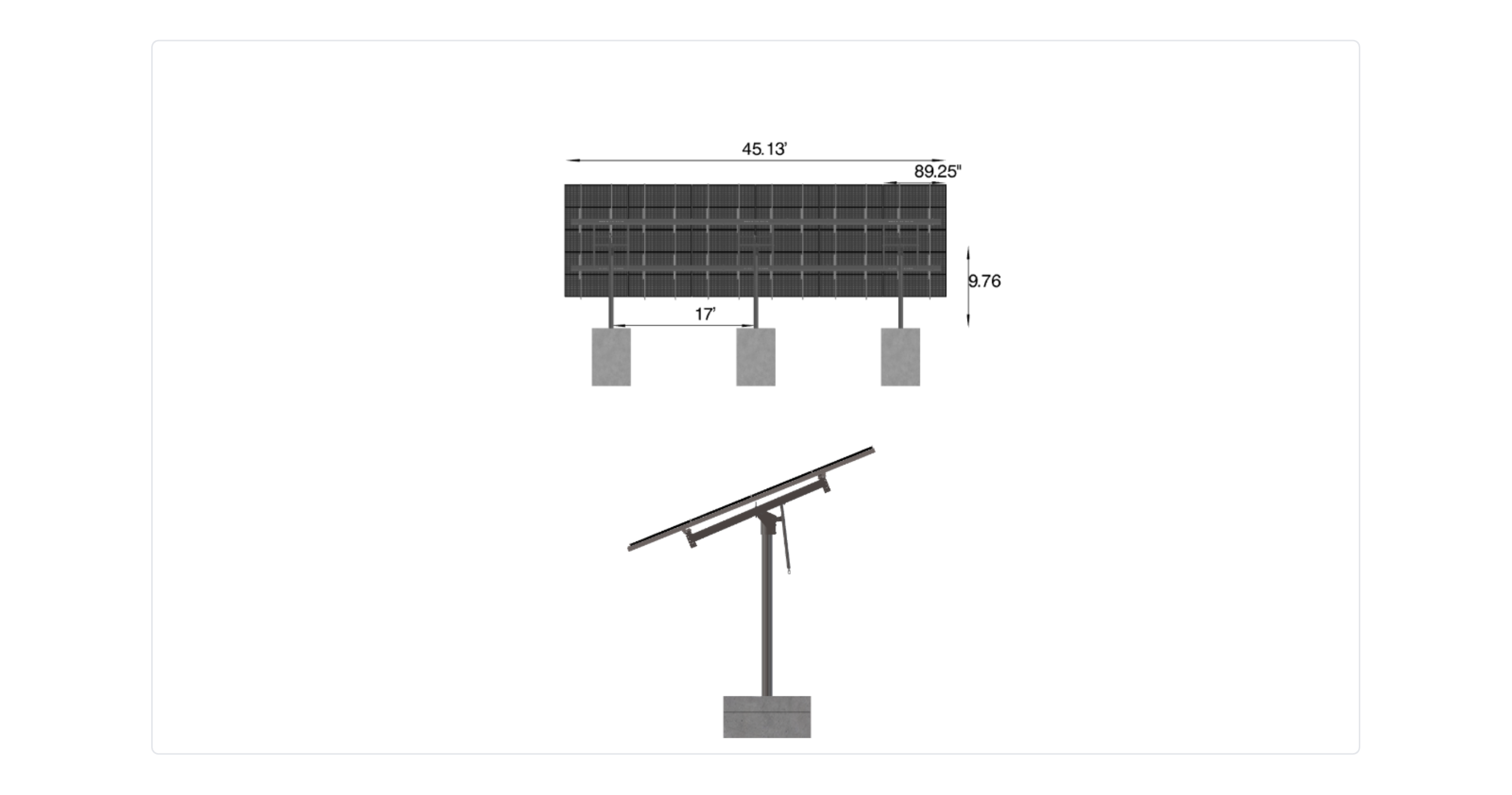 This Pole Mount is designed to meet your site-specific inputs which are modules with dimensions of 89.25 inches by 44.625 inches and an array layout of 6 wide by 5 high.