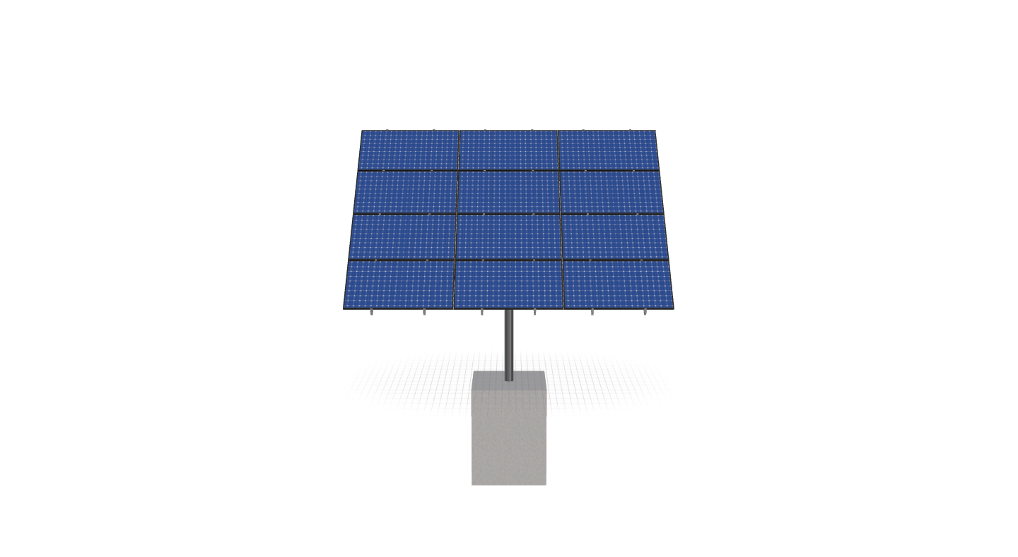 This Pole Mount is designed to meet your site-specific inputs which are modules with dimensions of 74 inches by 41.1 inches and an array layout of 3 wide by 4 high.