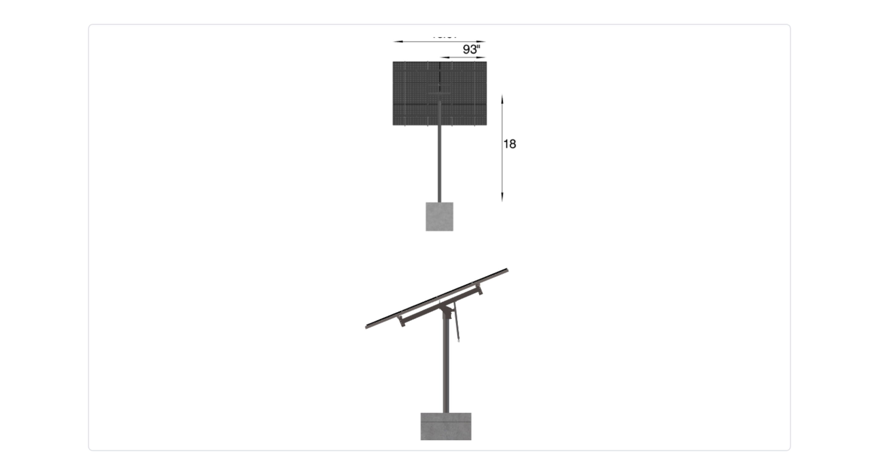 This Pole Mount is designed to meet your site-specific inputs which are modules with dimensions of 93 inches by 43 inches and an array layout of 2 wide by 3 high.
